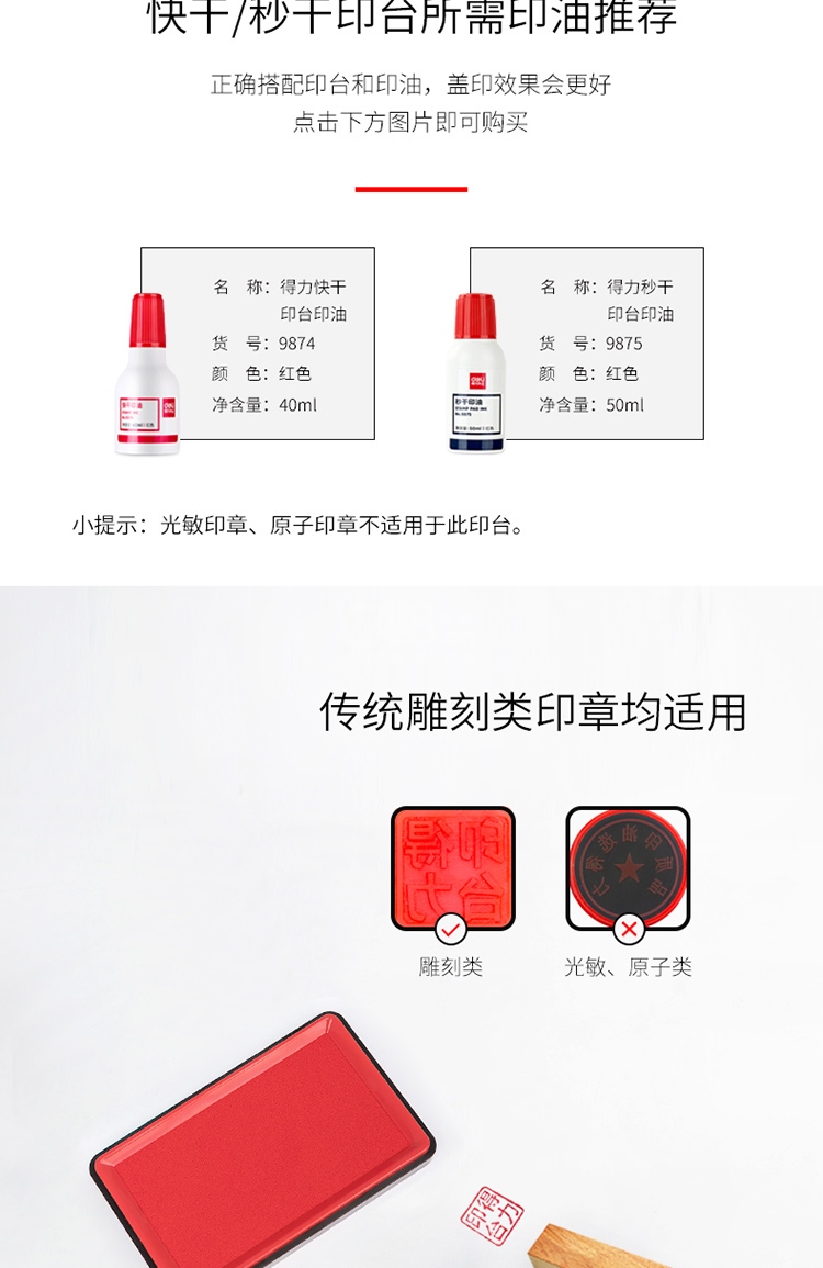 “deli/得力”No.9864ES 快干印臺 單個裝(紅色137*88mm方形快干印臺印泥清晰印記財務(wù)用品辦公用品)