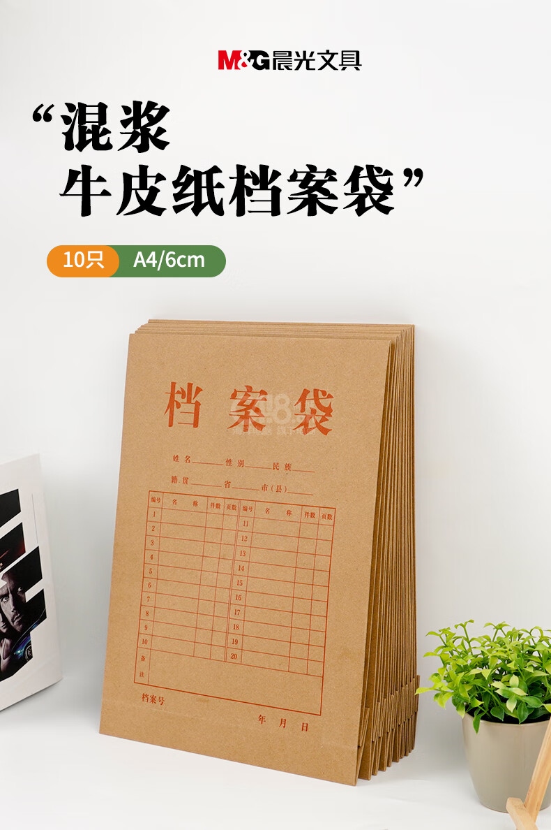 晨光(M&G)文具10只/A4/6cm牛皮紙檔案袋 加厚大容量200g文件資料袋 標(biāo)書合同票據(jù)收納分類袋ADM945F8