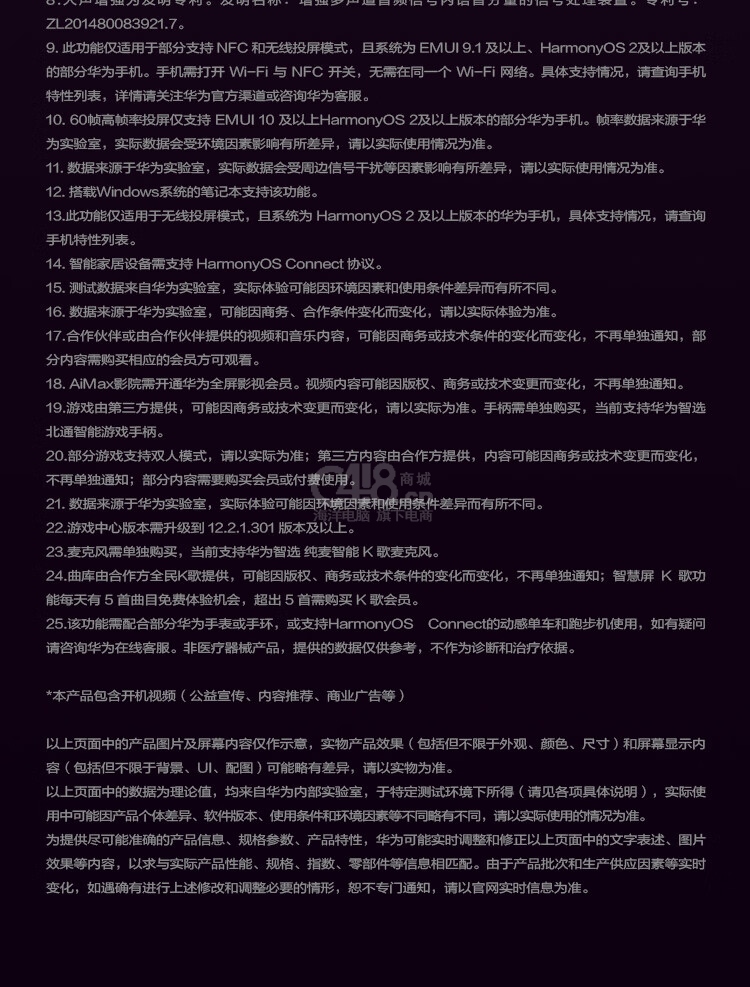 包裝箱標(biāo)配:1)整機(jī) x 1;2)底座 x 2;3)螺絲 x 4;4)語音遙控器 x 1;5)快速入門 x 1;6)AV轉(zhuǎn)接線 x 1;7)電源線 x 1;8)保修卡 x 1;9)7號(hào)電池 x 2;溫馨提示:不同批次包裝清單會(huì)存在差異,請(qǐng)以實(shí)物為準(zhǔn)。