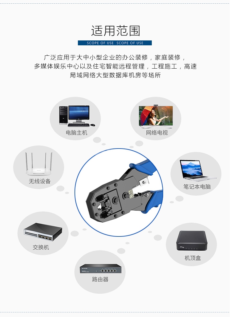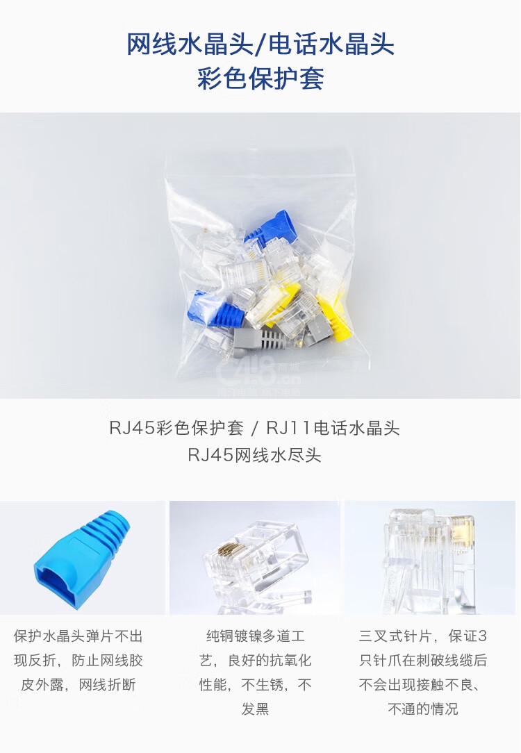 網(wǎng)線鉗×1 剝線刀×1 水晶頭×15 9V電池×1 網(wǎng)絡測試儀×1 皮套×3 電話水晶頭×5 扎帶×10