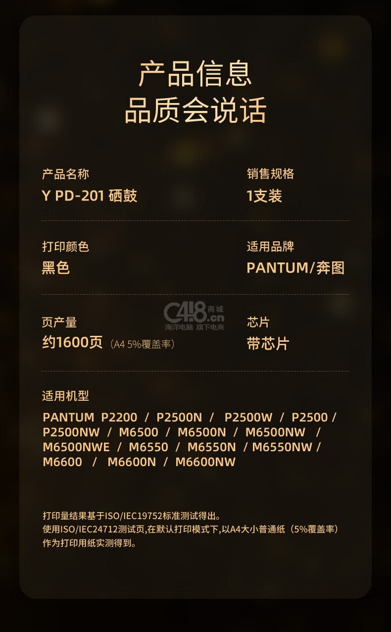 “YINYOU/印友”Y PD-201帶芯片 硒鼓 單個裝(黑色鉑金系列高品質(zhì)激光打印機硒鼓適用奔圖PANTUM P2200/P2500N/P2500W)
