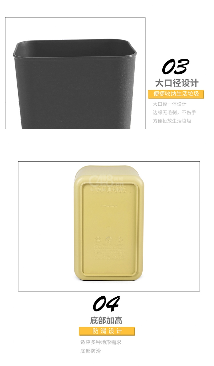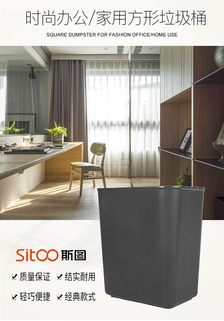 “sitoo/斯圖”6111-2 無蓋垃圾桶 單個裝(灰色14L直邊紙簍辦公室果皮垃圾分類桶)