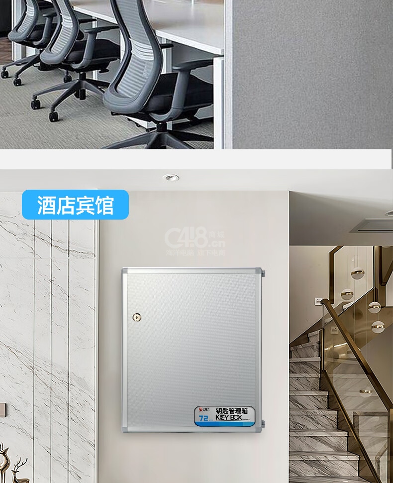 “Glosen/金隆興”E0024 24位鑰匙管理箱 單個裝(壁掛式鑰匙收納盒帶鎖鋁合金鑰匙柜收納管理箱含鑰匙牌)
