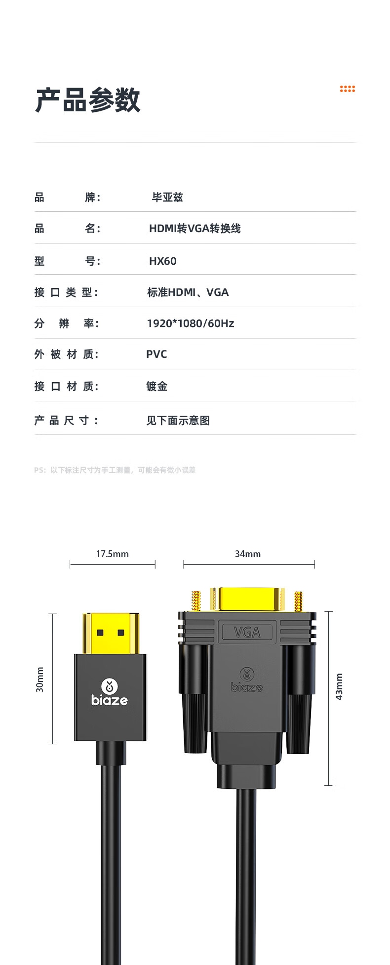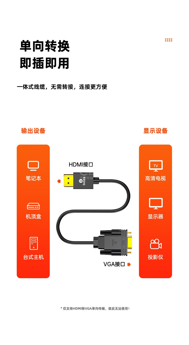 HDMI轉(zhuǎn)VGA轉(zhuǎn)換線(HX60-1M)*1保修卡*1產(chǎn)品包裝*1