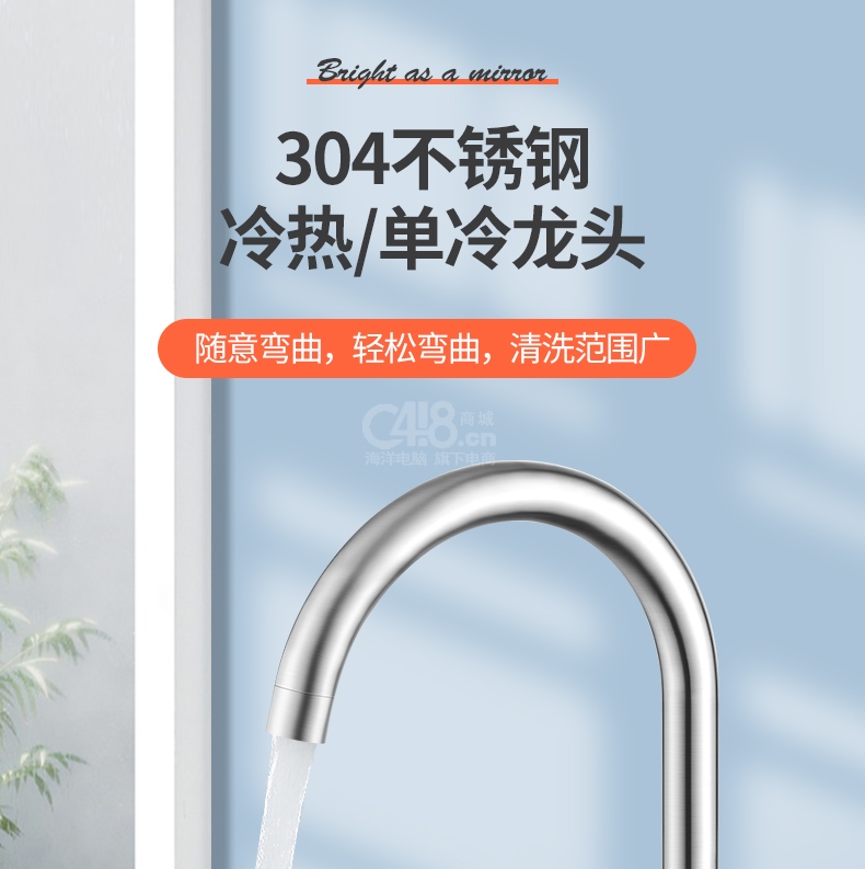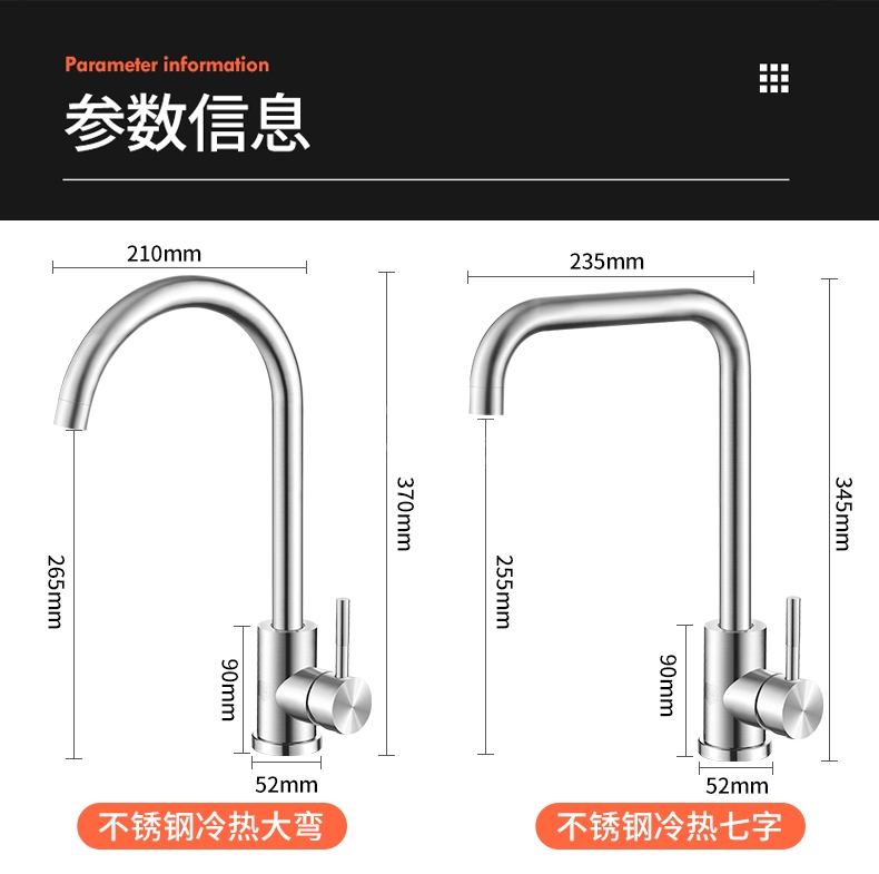 “SuoXin/鎖心”25cm 水龍頭 1個裝(304不銹鋼廚房冷熱小七字混合水頭洗菜盆水槽龍頭立式拉絲可旋轉(zhuǎn))