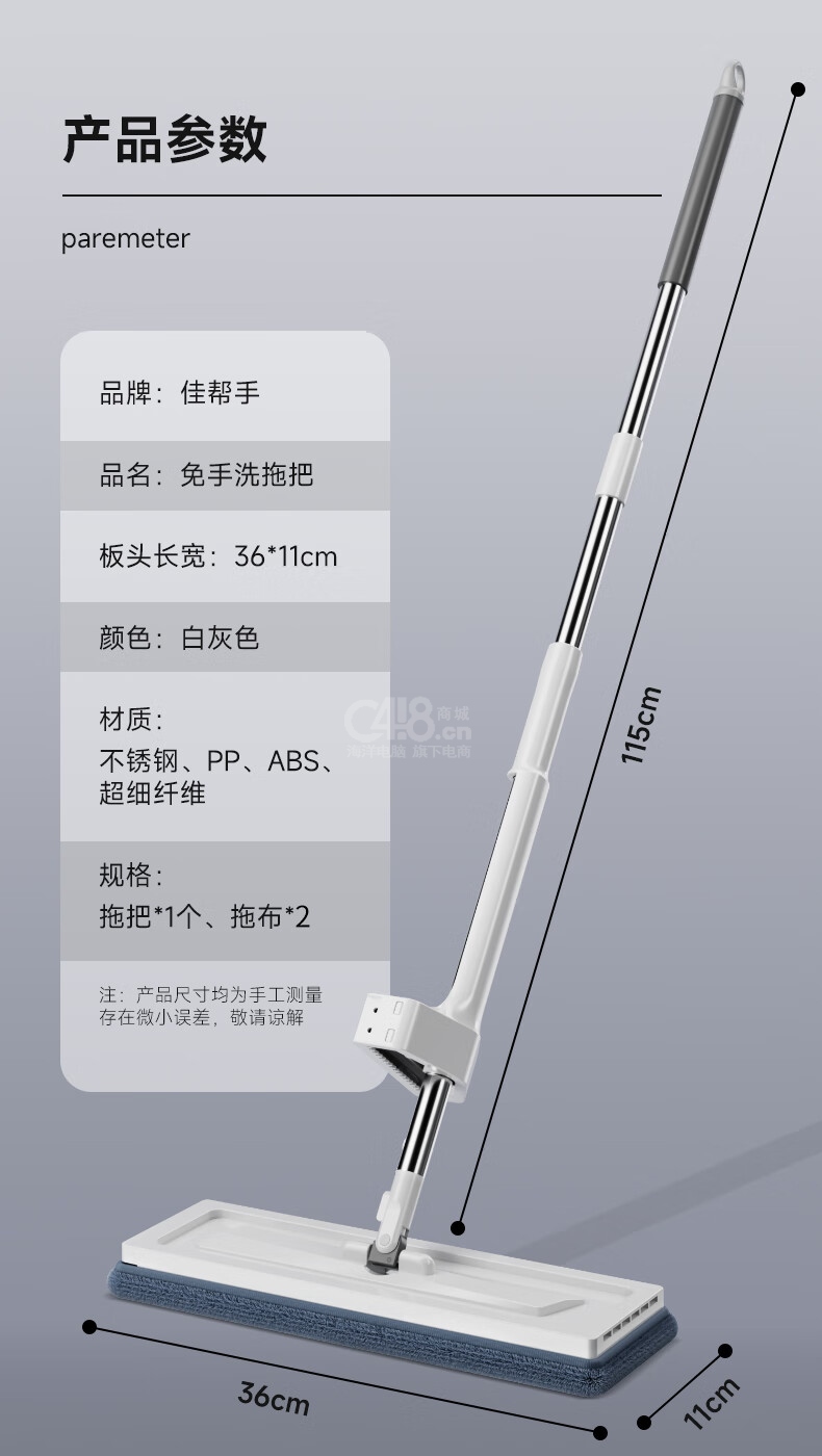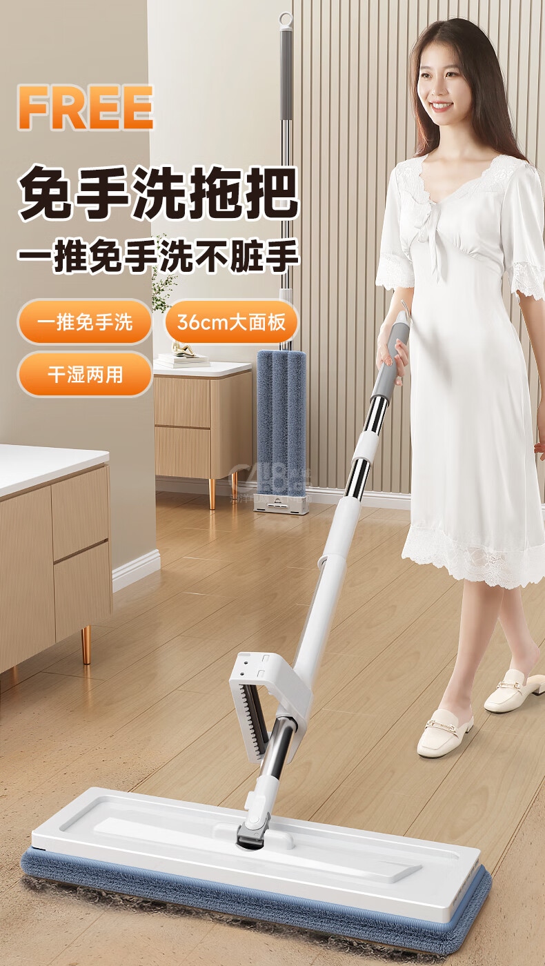 “joybos/佳幫手”JBS-PBTB-201A-JGY2P 平板拖把 單把裝(一拖凈免手洗2024懶人平板拖地擦地拖布墩布吸水除塵)