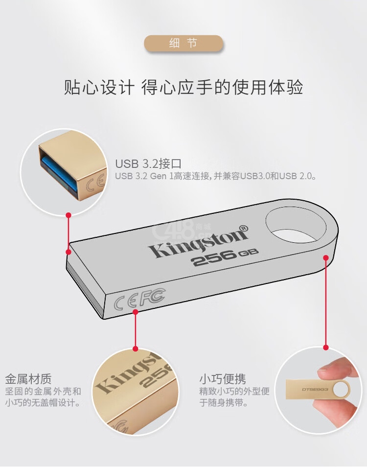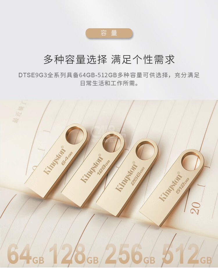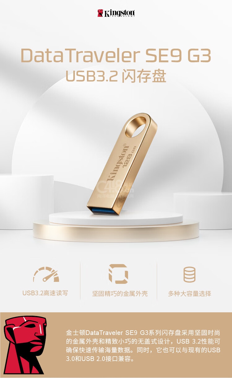 “Kingston/金士頓”DTSE9G3/64GB U盤 單個裝(金色64GB USB3.2 Gen 1優(yōu)盤DTSE9G3大容量金屬讀速高達(dá)220MB/s寫速高達(dá)100MB/s)