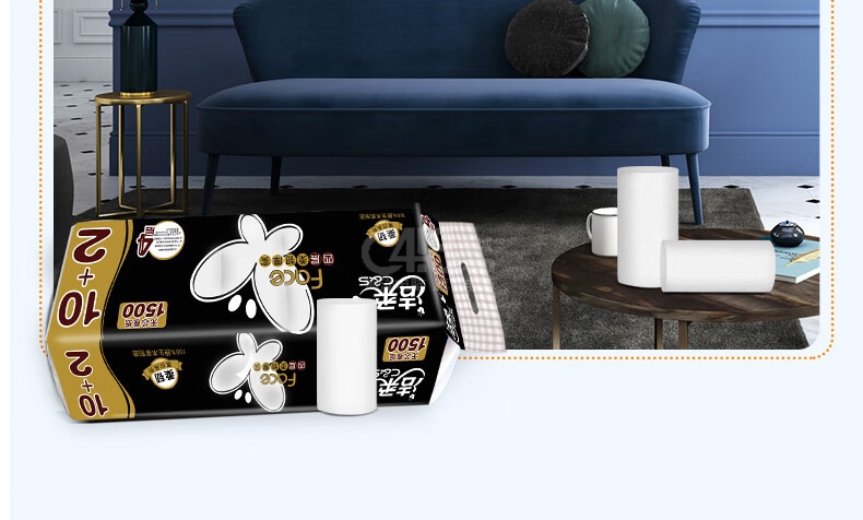 “C&S/潔柔”BW174-12 無芯卷紙 單提裝(黑Face 4層加厚1500g衛(wèi)生紙衛(wèi)生間廁紙巾125克*12卷)