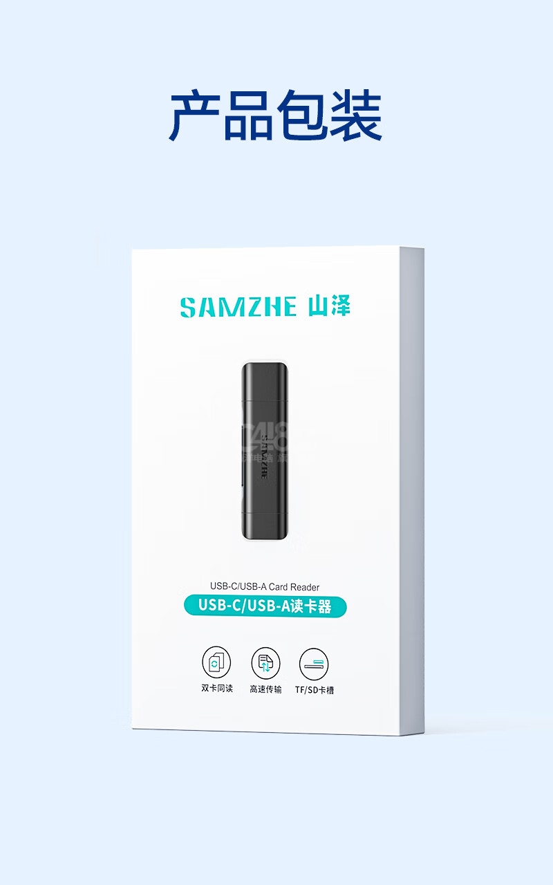 “SAMZHE/山澤”CRS02B USB3.0讀卡器 單個裝(黑色SD/TF多功能二合一Type-C手機(jī)OTG讀卡器單反相機(jī)監(jiān)控記錄儀存儲內(nèi)存卡)