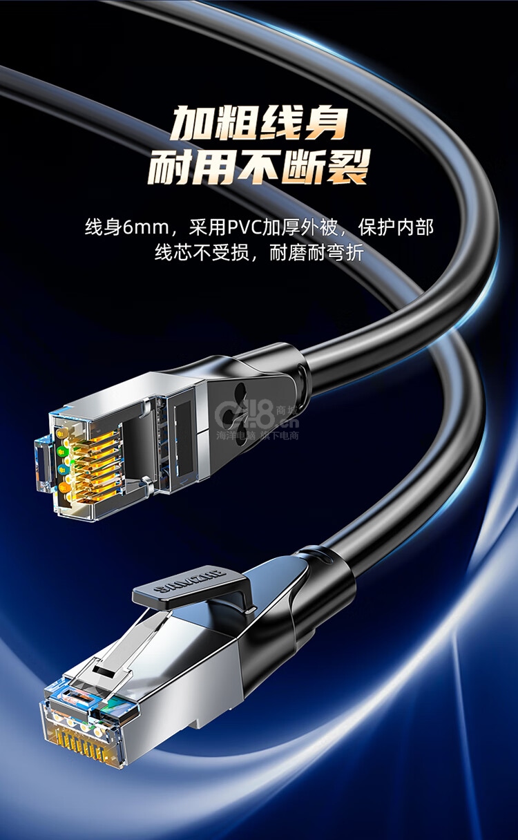 山澤(SAMZHE)六類網(wǎng)線 CAT6類千兆網(wǎng)絡連接線 工程家用電腦寬帶8芯雙絞金屬頭成品跳線 黑15米 GWD6150 *1