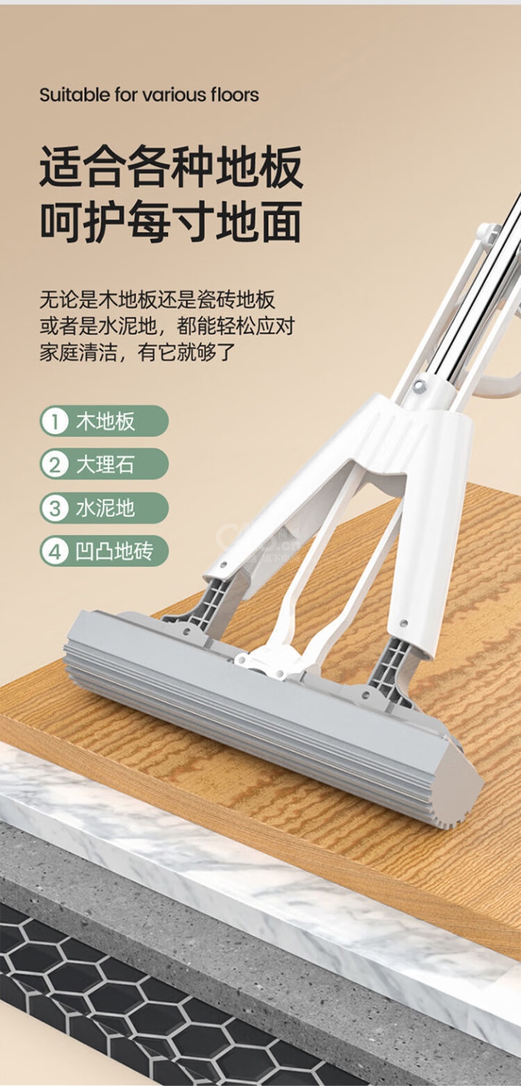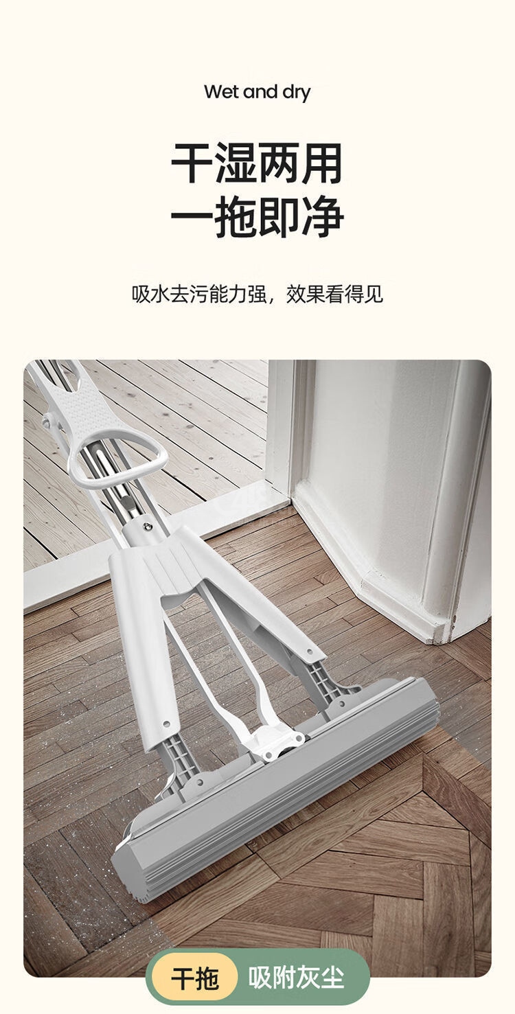 “YAGAO/雅高”升級款-對折28cm 膠棉拖把 單把裝(吸水海綿不銹鋼桿擠水免手洗新老款式隨機(jī)發(fā)貨)