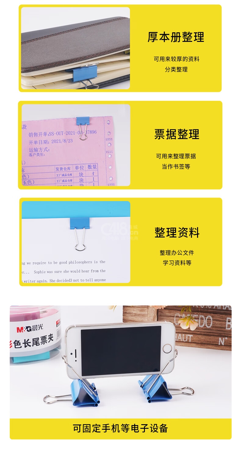晨光(M&G)文具25mm彩色長尾夾 金屬票據夾 經濟型辦公燕尾夾 48只/罐ABS916J4