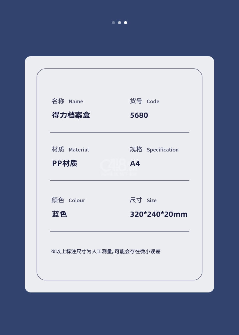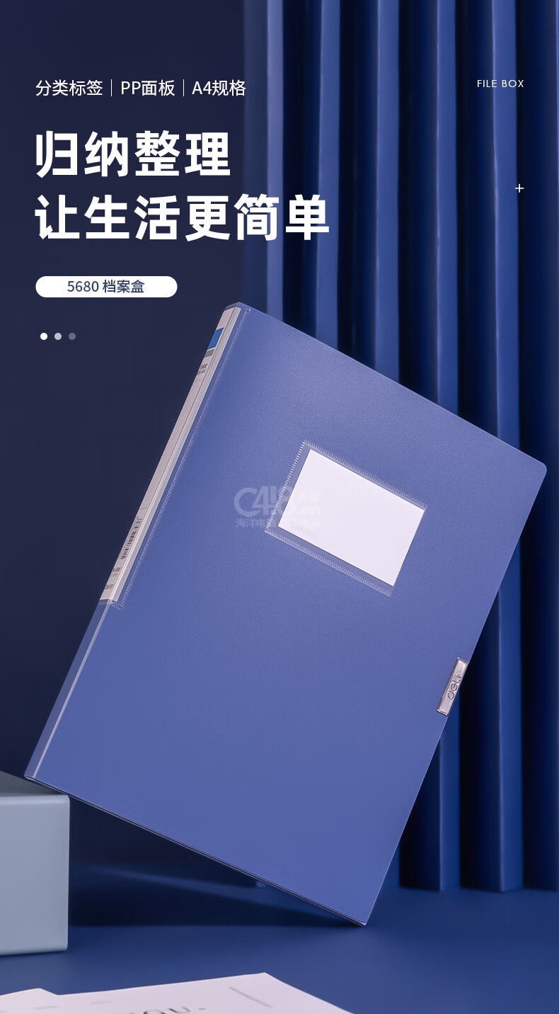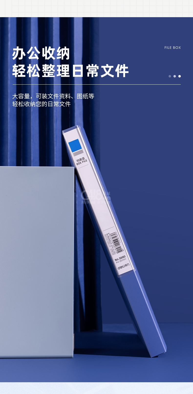 “deli/得力”No.5680 檔案盒 單個裝(藍色20mm A4加厚PP粘扣文件盒資料盒憑證文件收納盒財會用品)