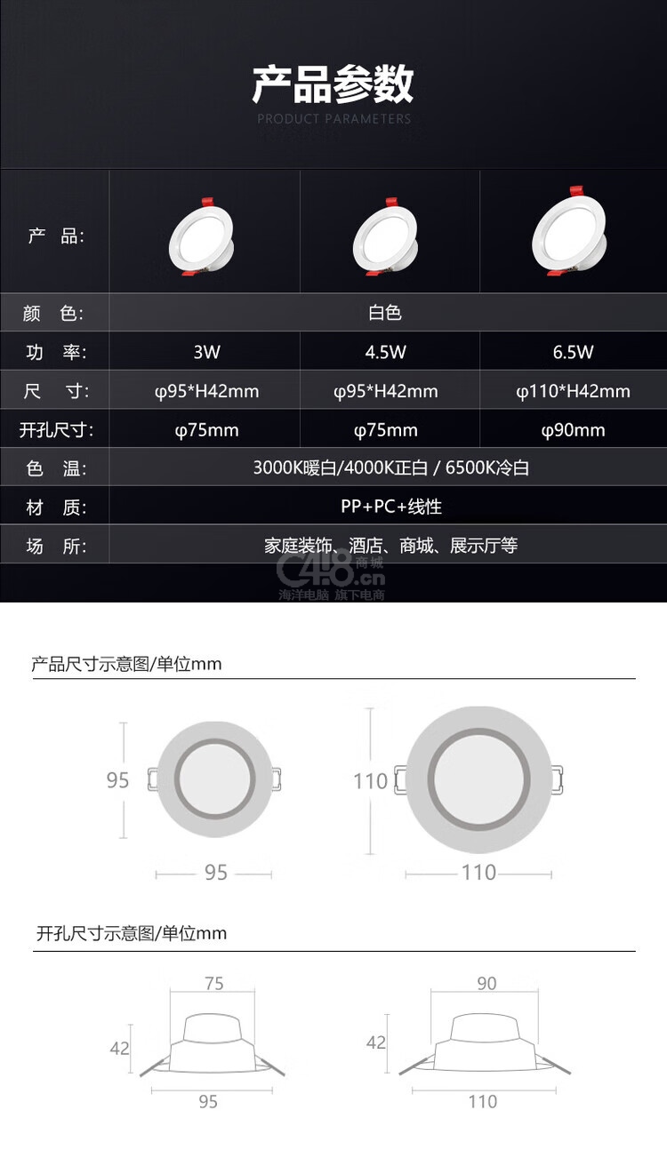 “DELIXI/德力西”MQ405 3W正白光 筒燈 單個(gè)裝(白色開(kāi)孔7.5CM led暗裝嵌入式天花桶燈)