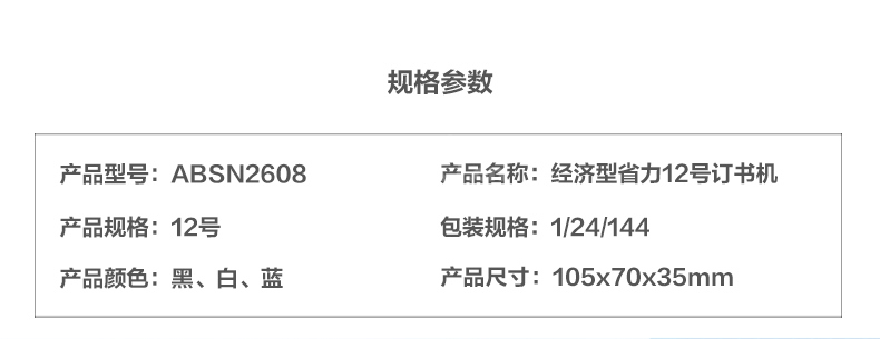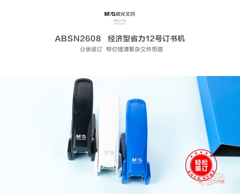 “M&G/晨光”ABSN2608 訂書機 單個裝(混色文具訂書器省力360度搖頭經(jīng)濟型金屬拉桿12號)