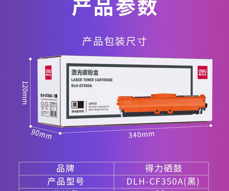 “deli/得力”DLH-CF350A 激光碳粉盒 單個(gè)裝(黑色硒鼓適用HP Color LaserJetPro MFPM176n/M177fw)