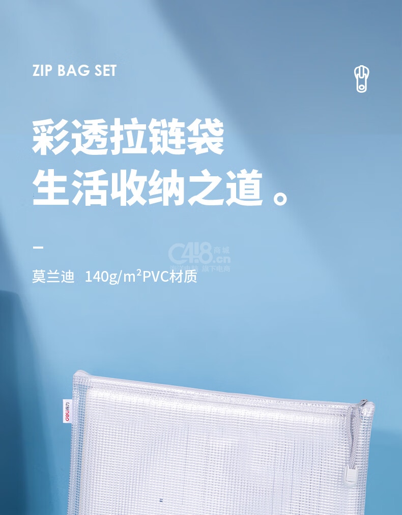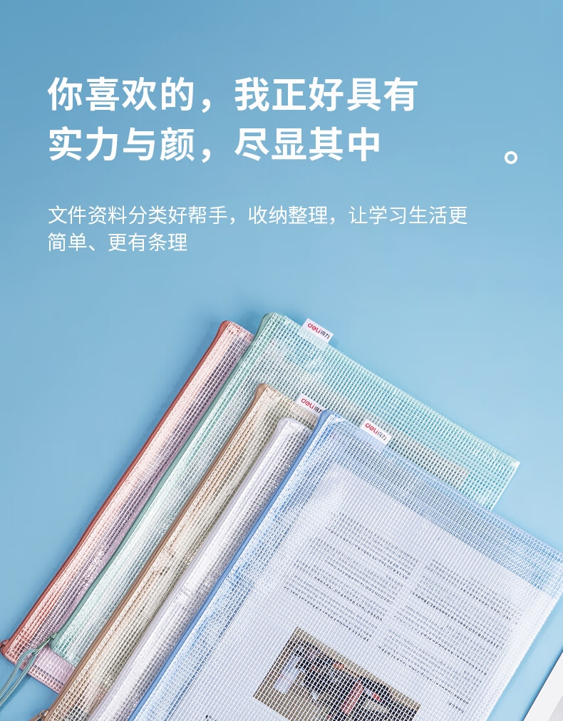 “deli/得力”No.63483A 彩透拉鏈袋 單包裝(莫蘭迪色系混色A4防水網(wǎng)格小學(xué)生科目分類文件袋文件保護試卷憑證收納5個/包)