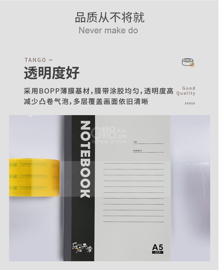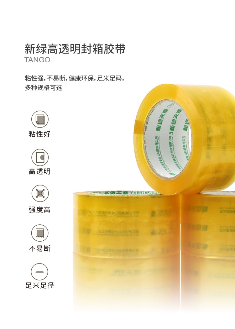 “TANGO/天章”60mm*60Y(54.8米)*50um 膠帶 單卷裝(淡黃色透明寬膠帶打包封箱辦公文具用品工廠車間)