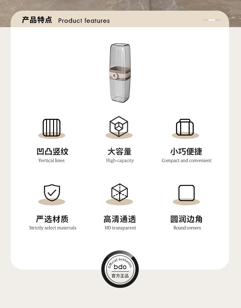 “bdo”6304 牙刷收納盒 1個(gè)裝(透明旅行牙刷洗漱杯收納盒漱口杯刷牙杯牙杯輕奢透明牙具盒漱口杯)