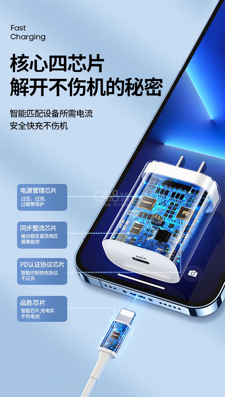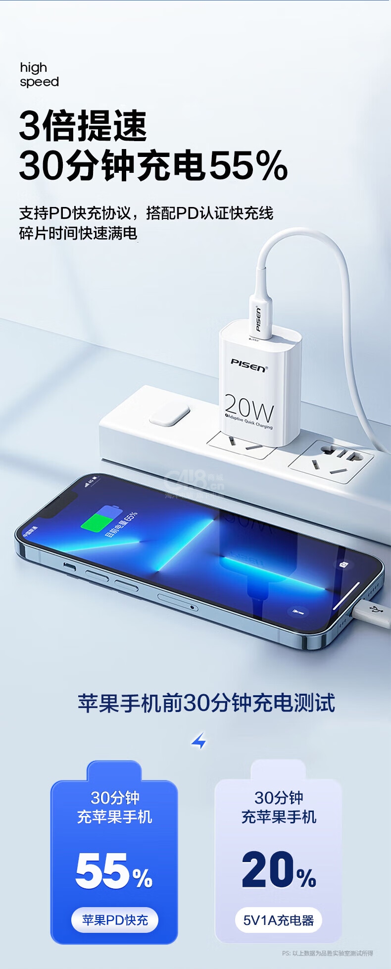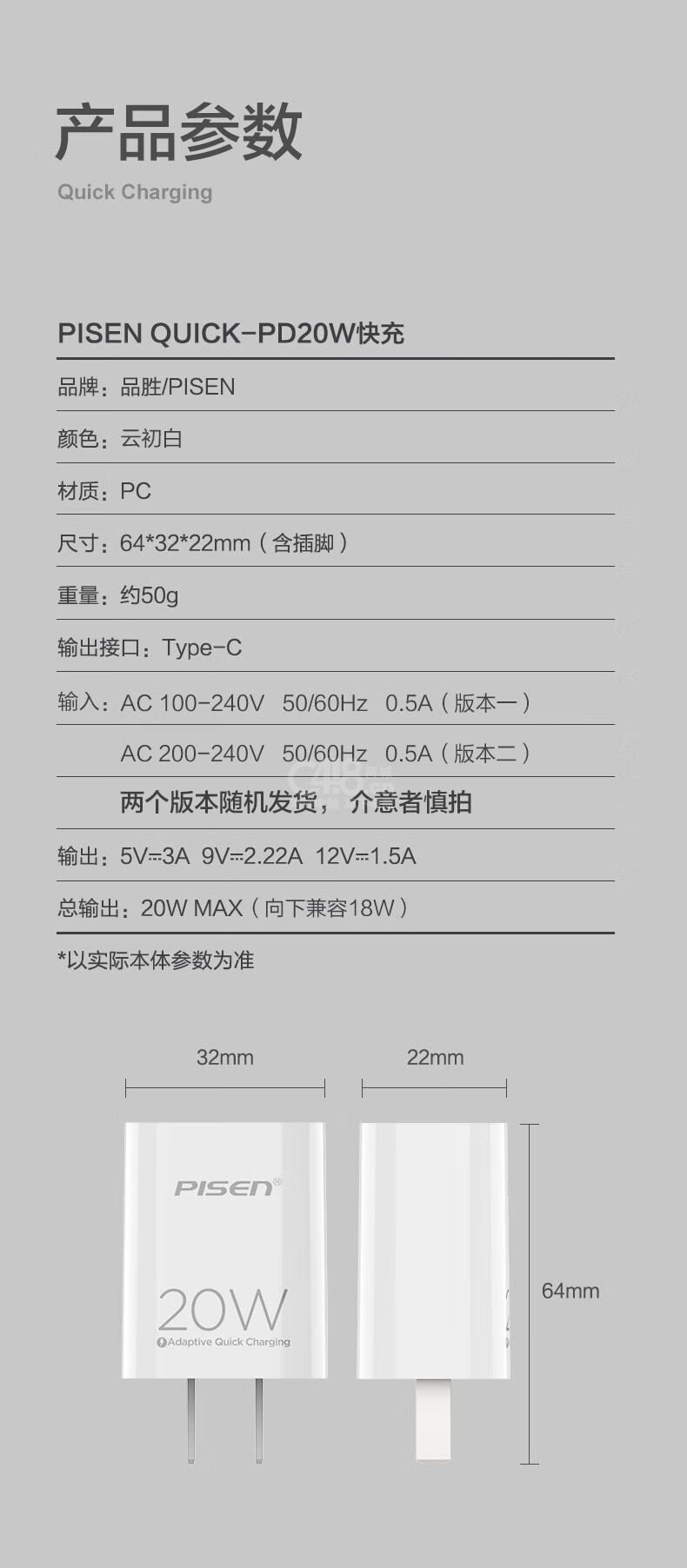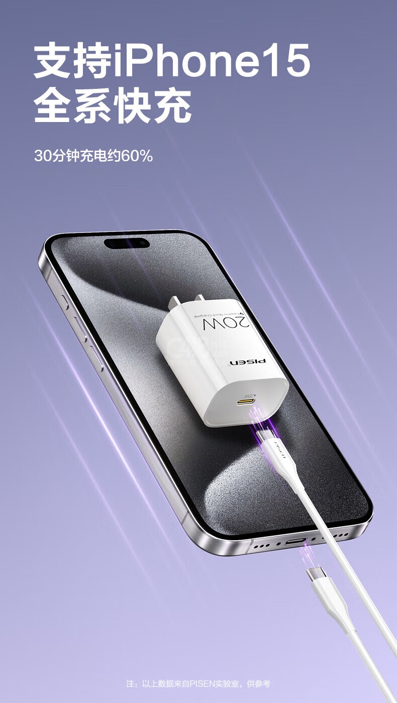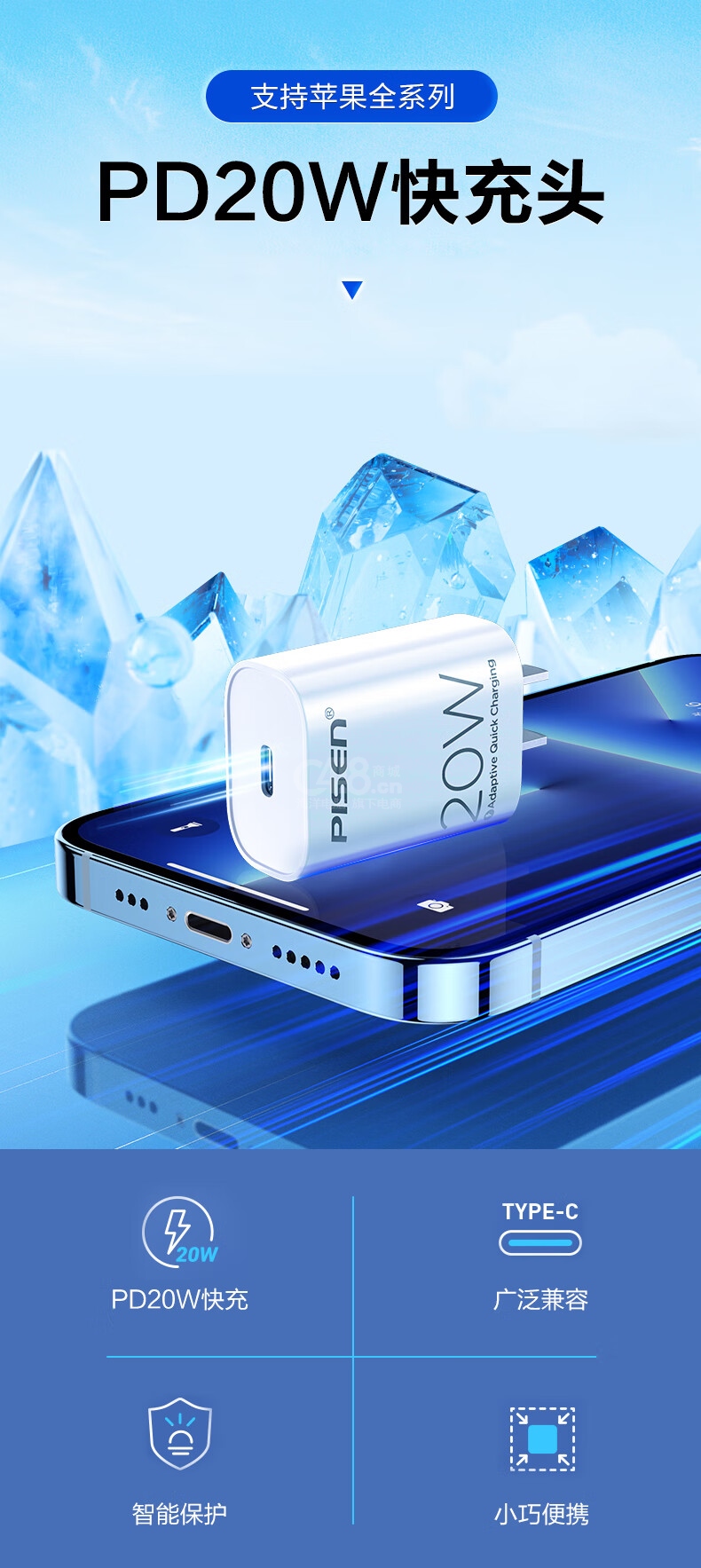 “PISEN/品勝”TS-C135 充電器 單個(gè)裝(白色PD20W快充iPhone15充電頭type-c通用蘋果15Pro/14/13小米華為p70三星手機(jī)ipad平板插頭TS-C135B)