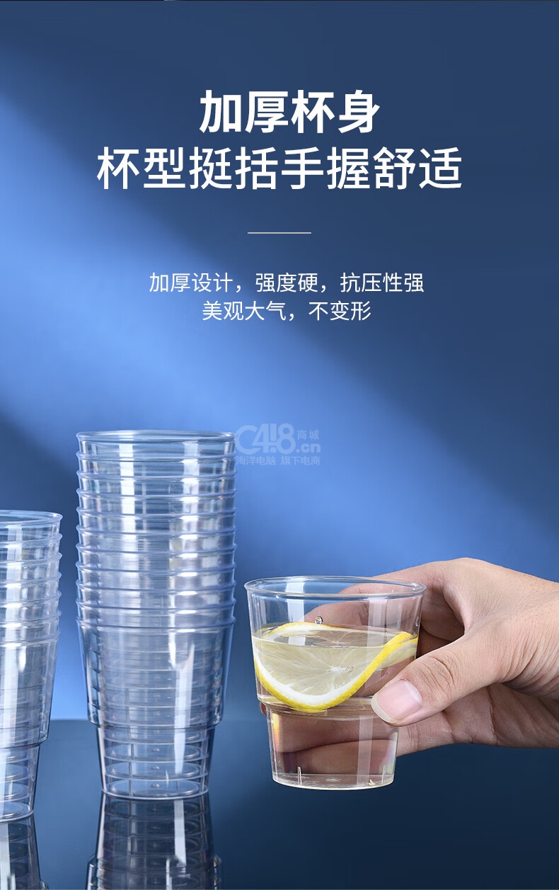 “temeiju(tmj)/特美居”TMJ-206 高透厚實航空杯 單盒裝(透明一次性杯子加厚塑料水杯酒杯茶杯太空杯飲料杯200ml/只50只/盒)