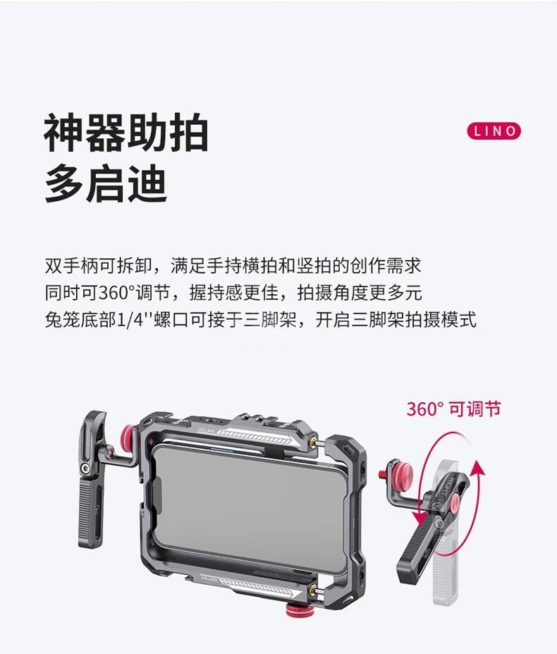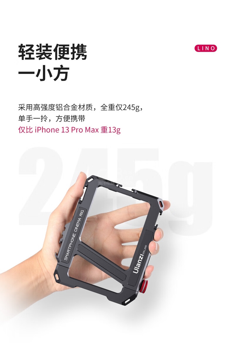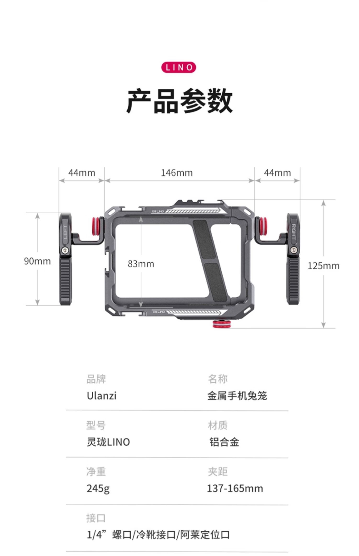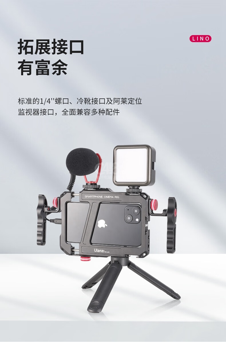 “Ulanzi/優(yōu)籃子”靈瓏lino 金屬手機兔籠 單個裝(補光燈套裝雙手持?jǐn)z像兔籠蘋果手機橫豎拍攝影拍照擴展直播)