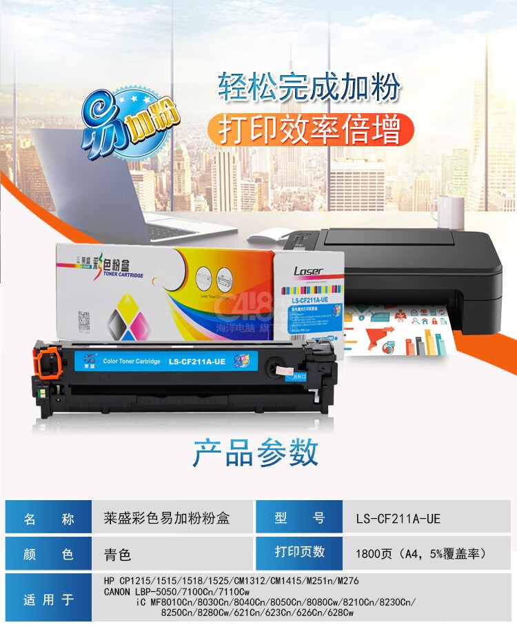 “l(fā)aser/萊盛”LS-CF211A-UE 彩色激光打印機粉盒 單個裝(青色硒鼓HP CP1215/151511518/1525/CM1312/CM1415/M251N/M276/CANON LBP-5050V7100Cn/7110CwiC MF8010Cn/8030Cn8040Cn8050Cn/8080Cw8210Cn)
