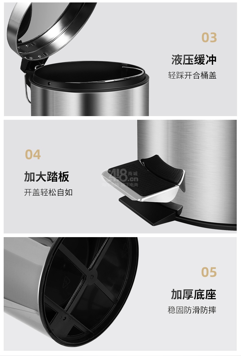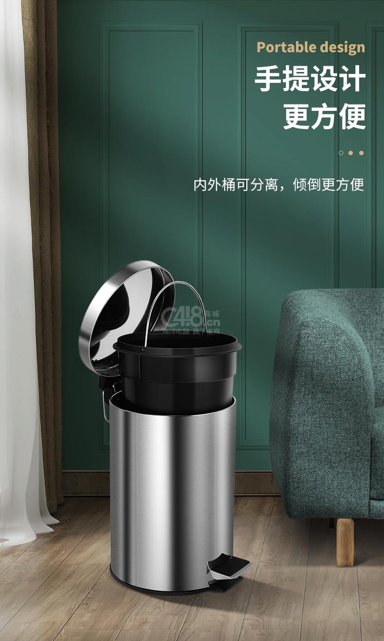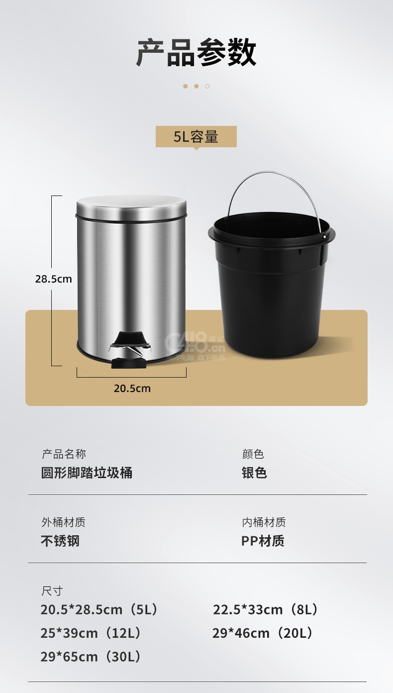 “Supercloud/舒蔻”SK-0646(8L) 腳踏垃圾桶 單個裝(帶內(nèi)桶8L不銹鋼帶蓋圓形室內(nèi)金屬腳踩桶衛(wèi)生間客廳廚房翻蓋拉機桶腳踏圓桶)