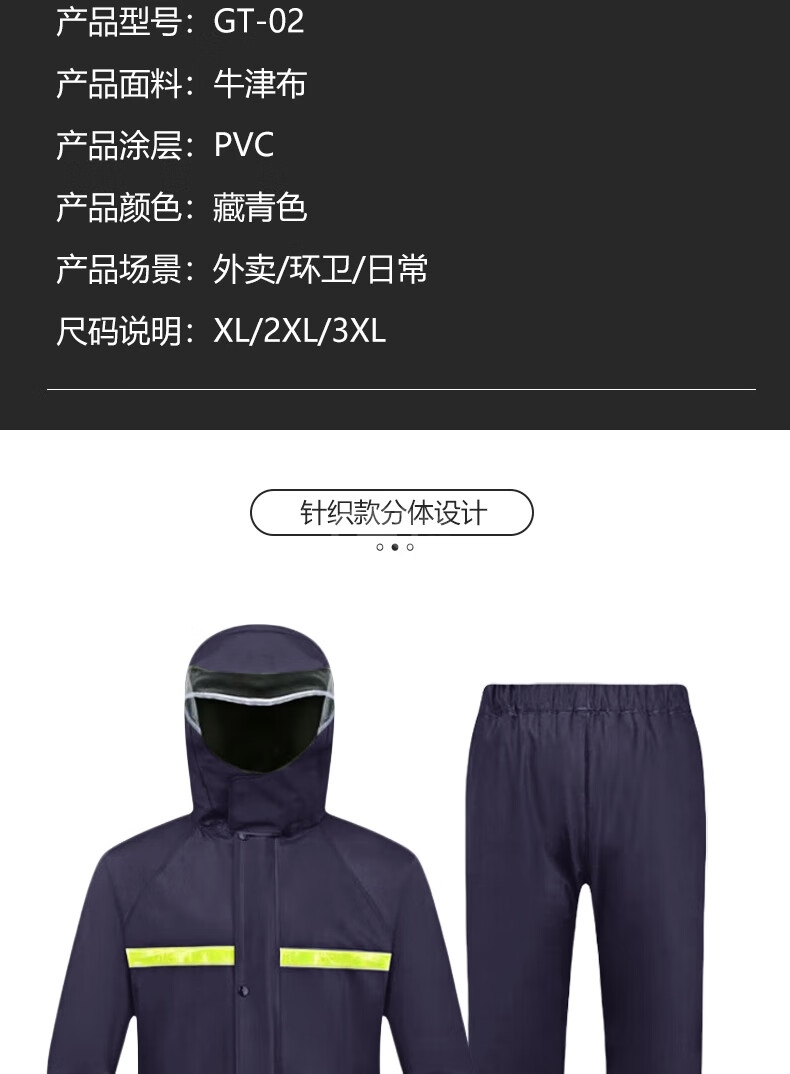 “GonTai/共泰”GT-ST06 分體雨衣 單套裝(藏藍色XL加厚成人雨衣雨褲套裝防暴雨戶外反光騎行外賣交通)