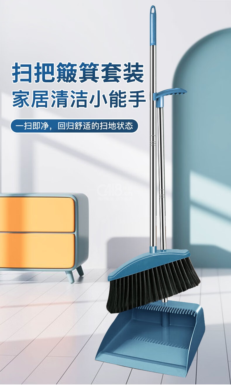 “漫德萊”軟毛 掃把簸箕套裝 單套裝(北歐藍掃帚撮箕掃地笤帚)