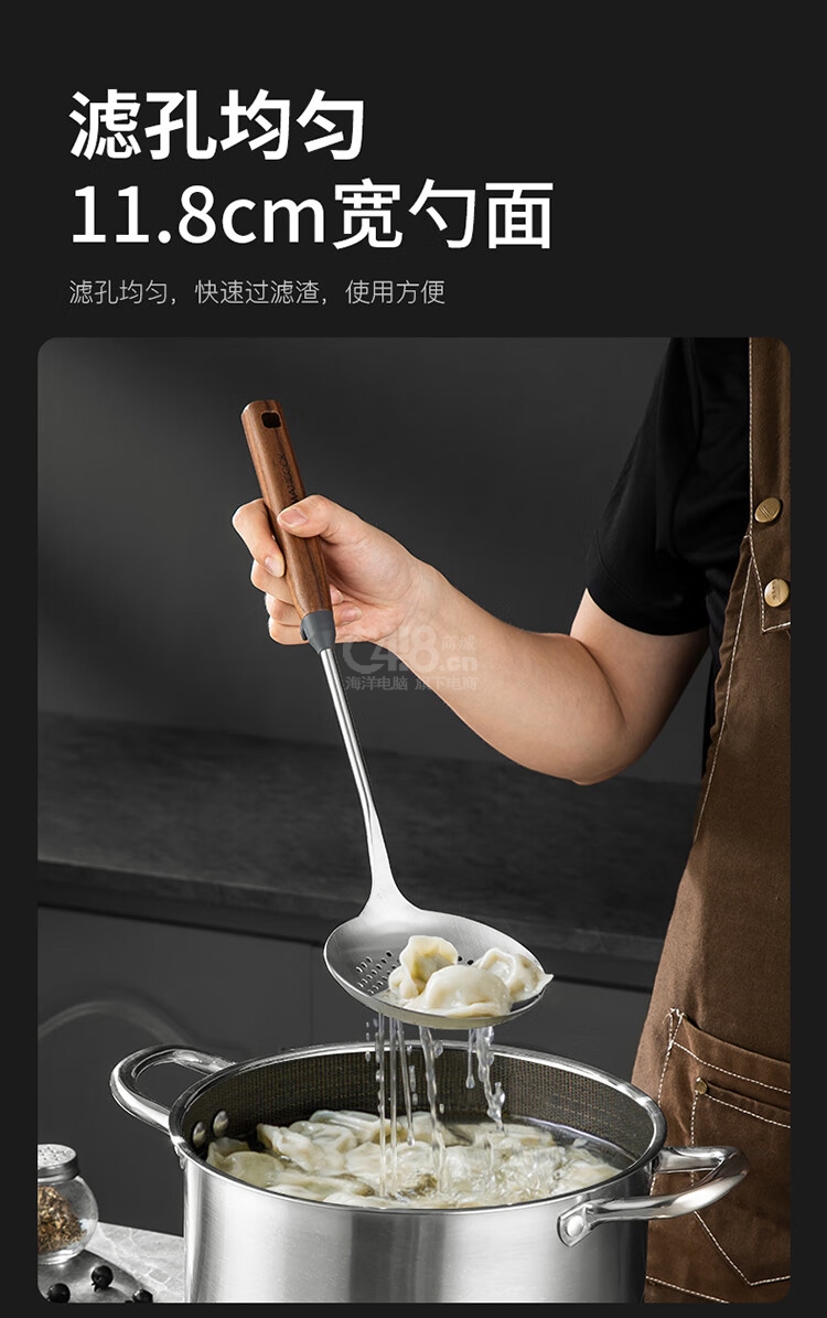 “maxcook/美廚”MCCU0674 304不銹鋼鏟勺套裝 單套裝(鍋鏟炒鏟湯勺漏勺硅膠鏟胡桃木鏟勺子)