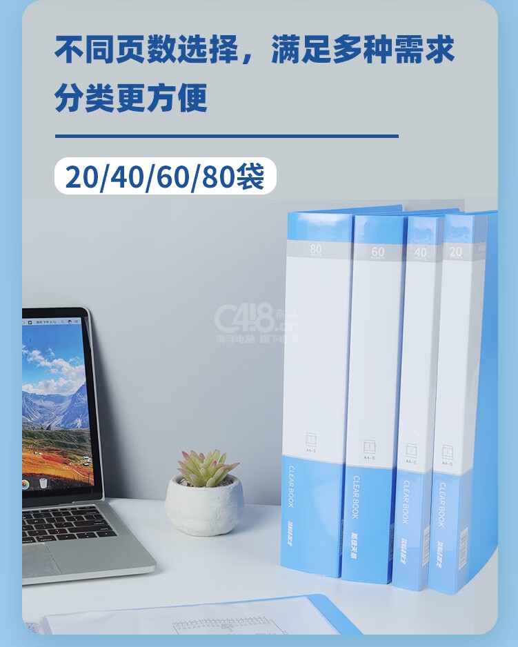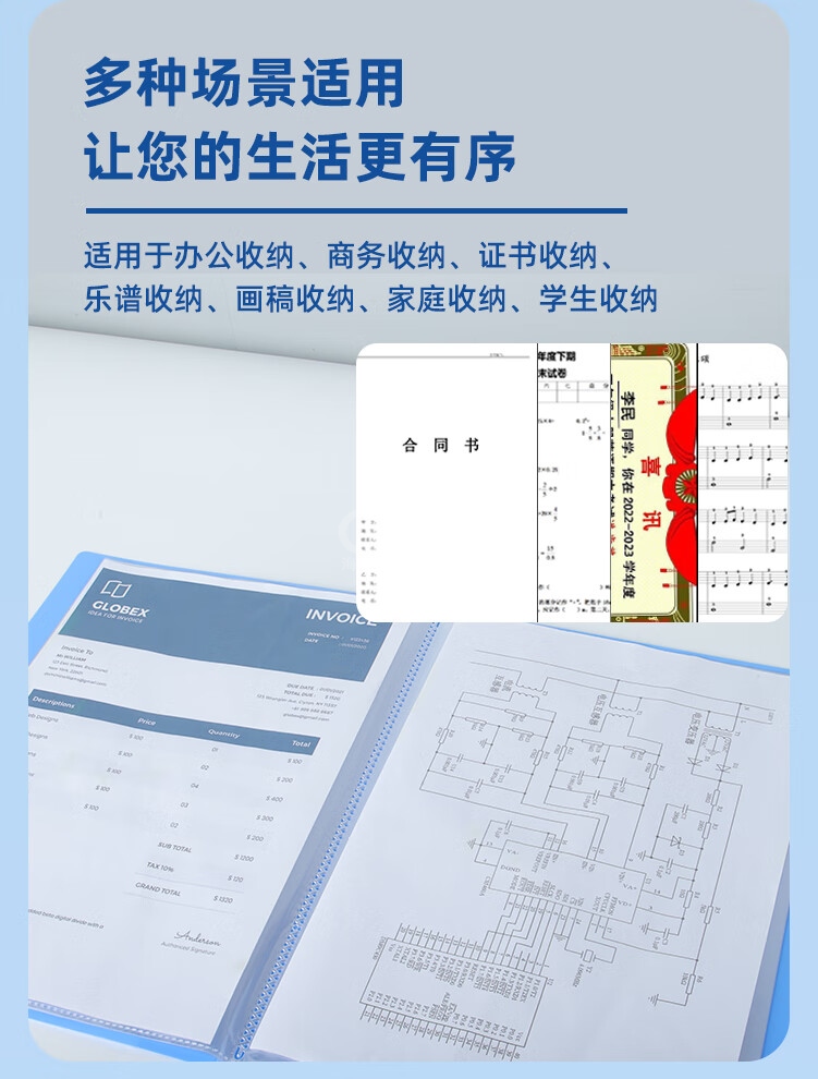 “TANGO/天章”NO.0183 資料冊 單個裝(藍色A4/20頁文件活頁收納冊插袋檔案文件夾試卷科目收納袋文件保護辦公用品)