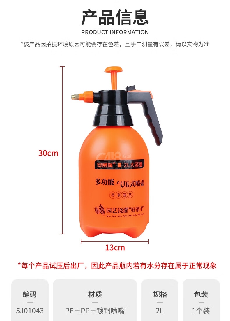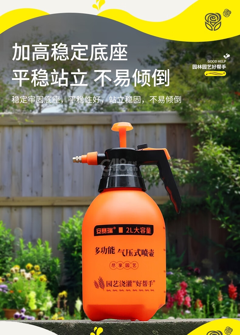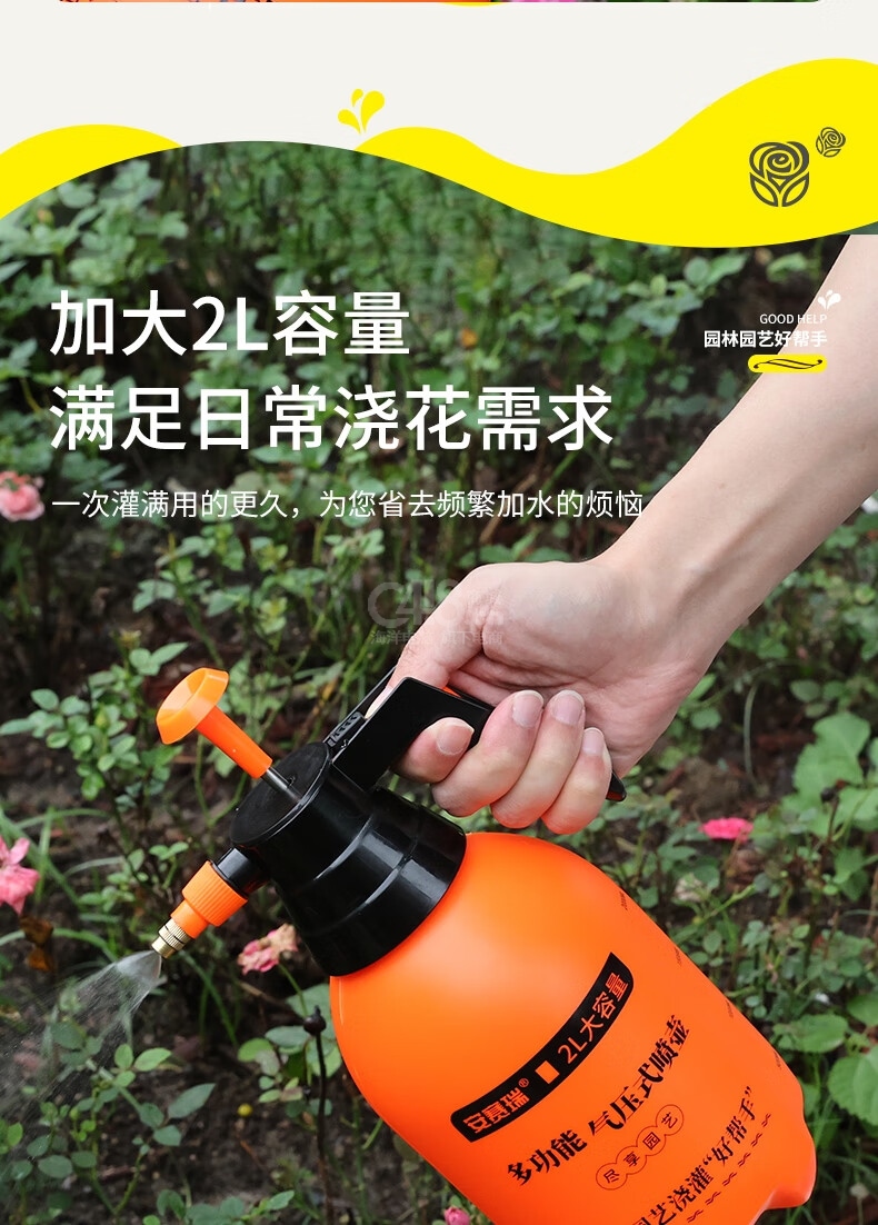 “SAFEWARE/安賽瑞”5J01043 高壓噴壺 1個裝(橙色2L澆花水壺噴霧器噴水壺氣壓式灑水噴壺器)