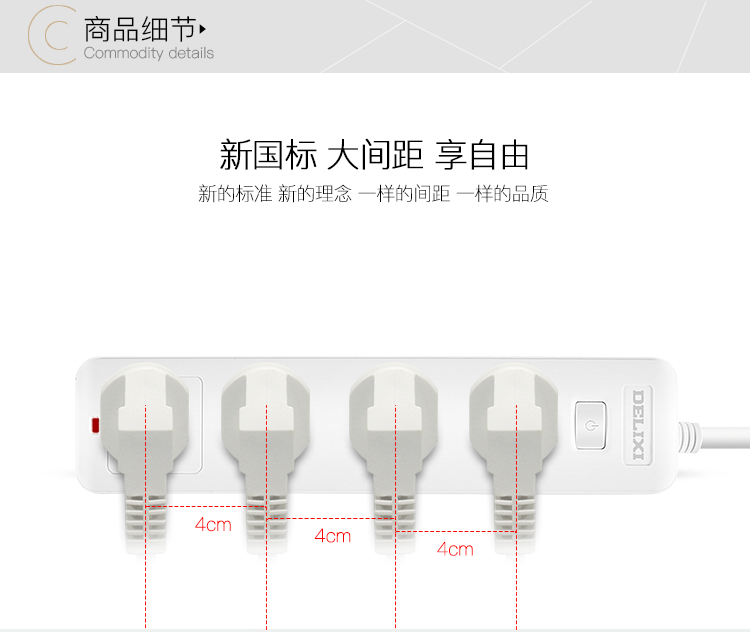 “DELIXI/德力西”CD98J-LK4X1.8 排插 1個(gè)裝(新國(guó)標(biāo)插座帶開(kāi)關(guān)插線板/插排/排插/拖線板/插板/接線板4位總控1.8米)