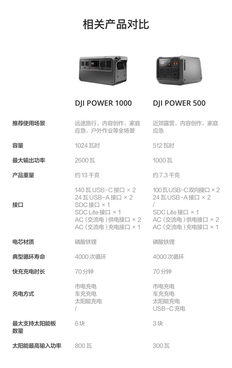 “DJI/大疆”DJI Power 1000 戶外移動電源 單個裝(2600W真大功率1度電220V大容量露營戶外車載擺攤備用儲能電源)