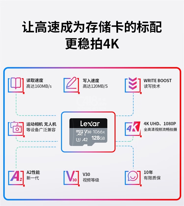 品牌:Lexar/雷克沙型號:1066X U3 V30 A2 128GB產(chǎn)地:廣東省深圳市