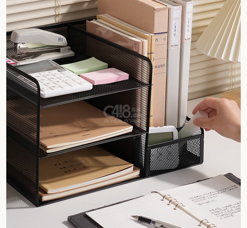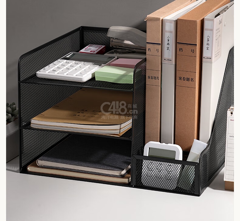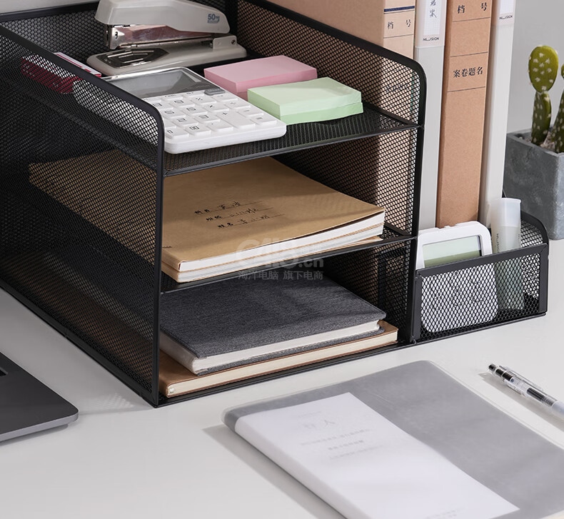“deli/得力”No.PB103 金屬組合文件框 單個(gè)裝(黑色多功能金屬網(wǎng)材組合式文件盤(pán)/欄書(shū)立辦公用品桌面檔案收納盒多層資料架置物架帶筆筒)