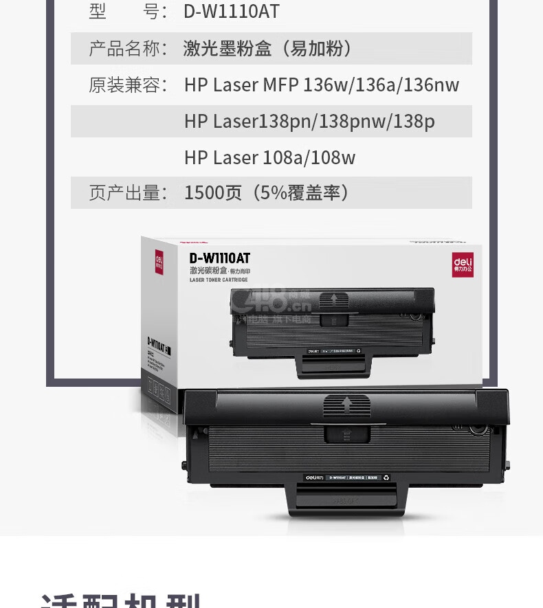“deli/得力”D-W1110AT 易加粉 激光碳粉盒 單個(gè)裝(黑色適用HP108a 108w 136a/w/nw 138p/pn/pnw)