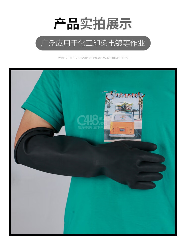 “MAOZHENG/貿(mào)正”55cm耐酸堿 手套 單副裝(黑色工業(yè)耐酸堿乳膠手套勞保加長加厚防水防滑耐磨膠皮)