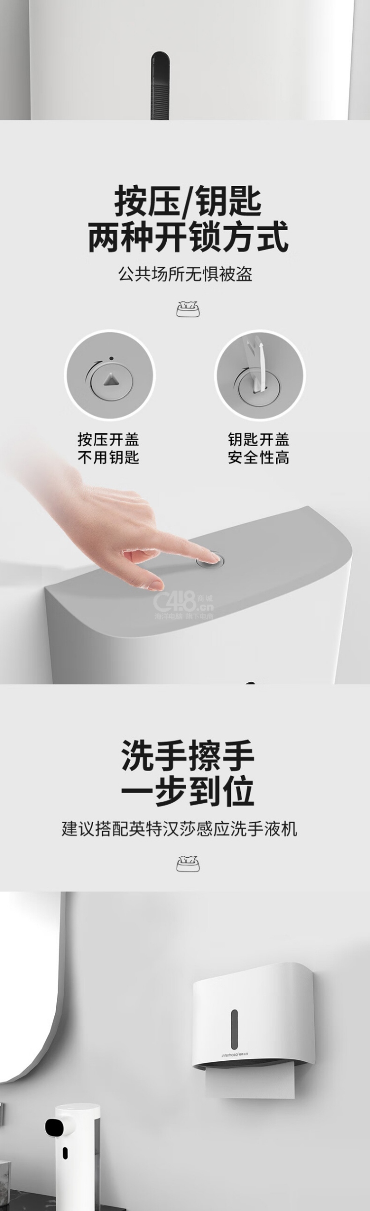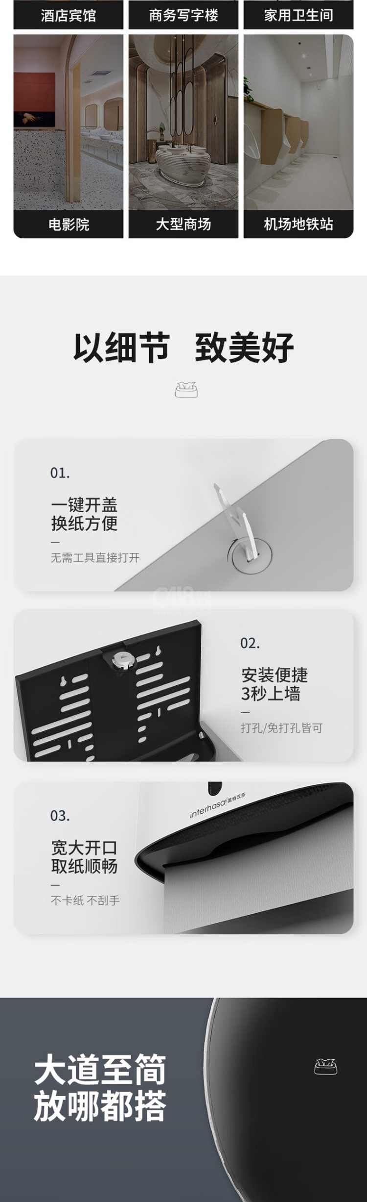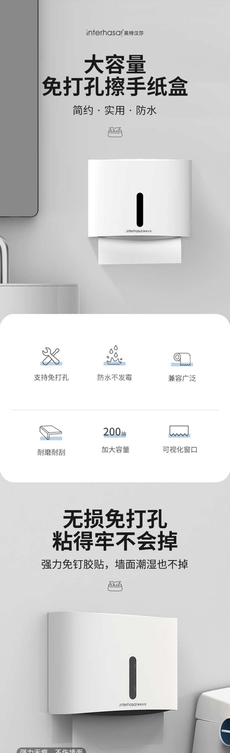 “interhasa/英特漢莎”E6015 擦手紙盒 單個裝(白色掛壁式衛(wèi)生間洗手間免打孔酒店廁所廚房商用干手抽紙巾盒)