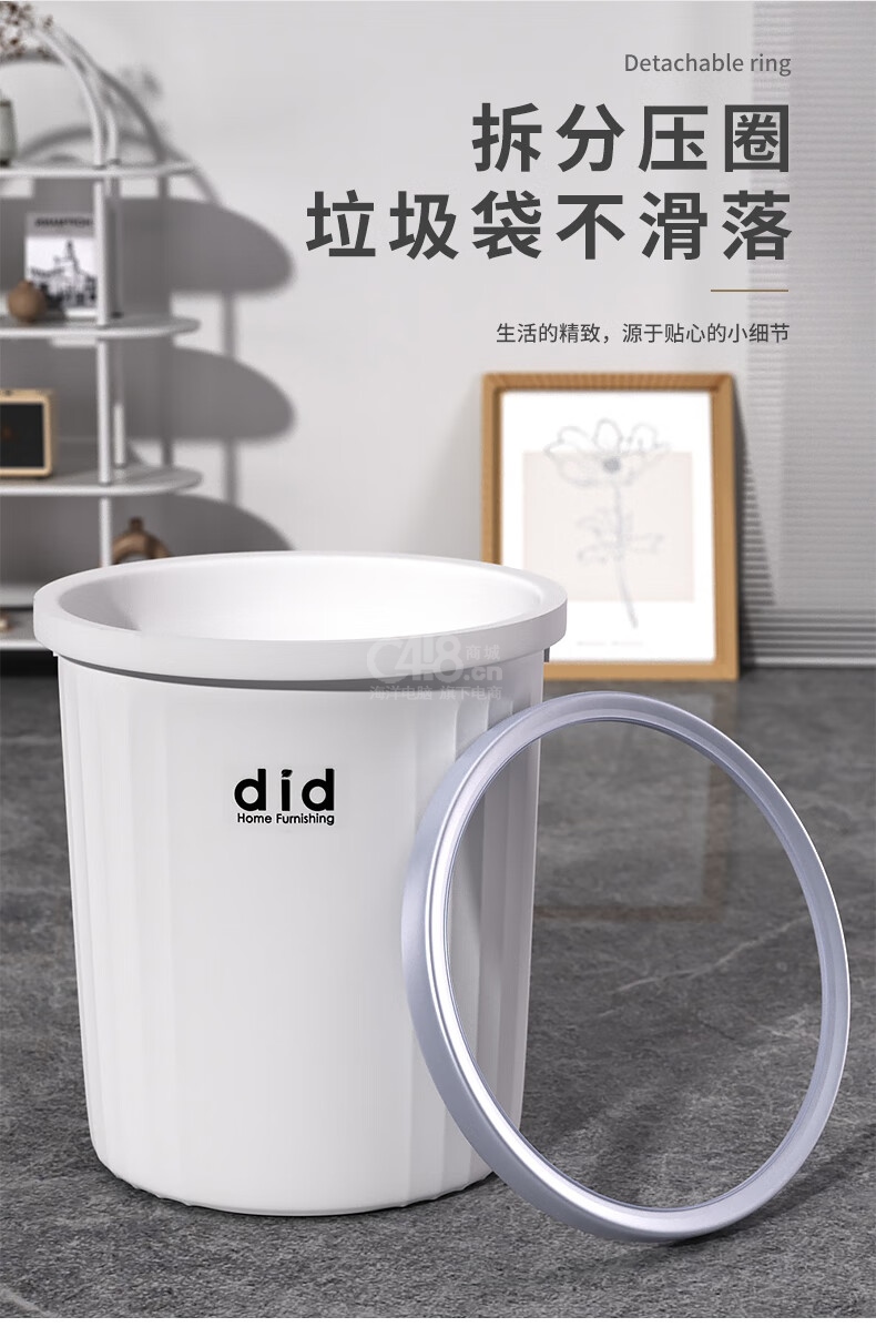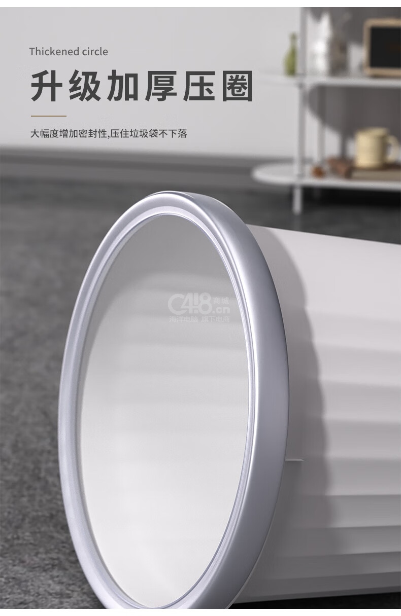 “西瑪易嘉”LJT-8-2 極簡壓圈垃圾桶 單個裝(白色大號客廳臥室衛(wèi)生間廚房無蓋分類廁所拉級捅簍20485)
