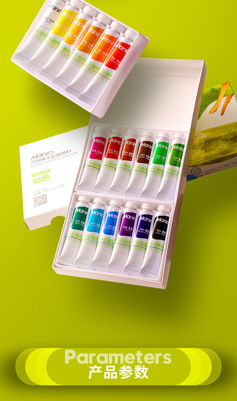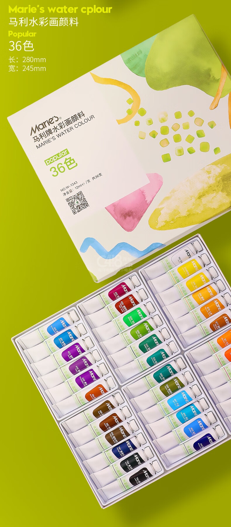 “Marie’s/馬利”No.W-1343 水彩畫顏料 單套裝(36色12ml內(nèi)部小盒6支劃分便攜學(xué)生兒童水彩繪畫套裝膏體細(xì)膩色彩飽和)
