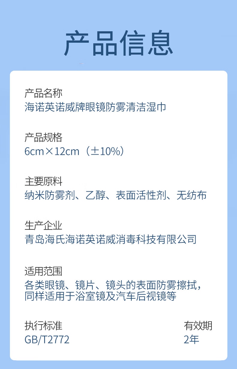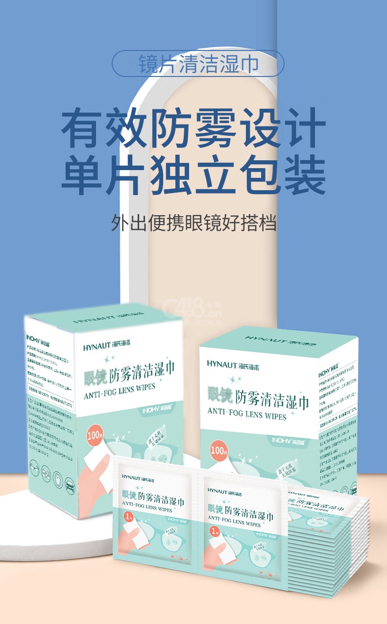 海氏海諾 鏡片防霧濕巾 眼鏡防霧清潔濕巾 6cm*12cm 100片/盒*1
