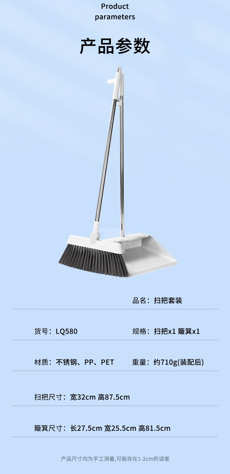 “deli/得力”LQ580 掃把簸箕套裝 單套裝(加厚加大防風梳齒型工廠車間地面清潔笤帚畚箕組合兩件套)