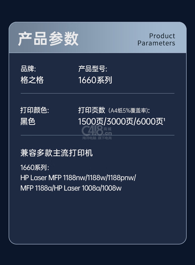 “G&G/格之格”NT-CNH1660XCT-6K 硒鼓 單個(gè)裝(黑色適用惠普1188w 1136w 1188nw 1188a 1008a 1008w打印機(jī)墨盒超大容量帶芯片)