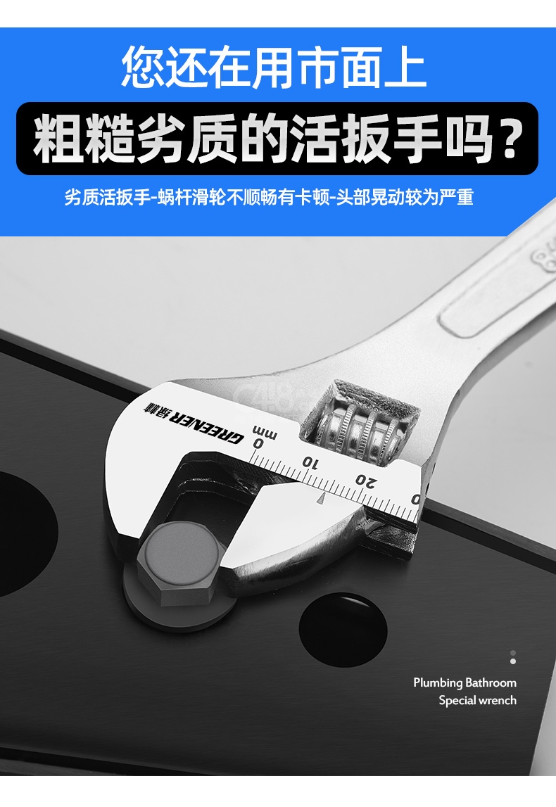 “GREENER/綠林”8寸 活動扳手 1把裝(套裝工具萬能活口扳手大開口多功能衛(wèi)浴活絡(luò)扳子光柄)