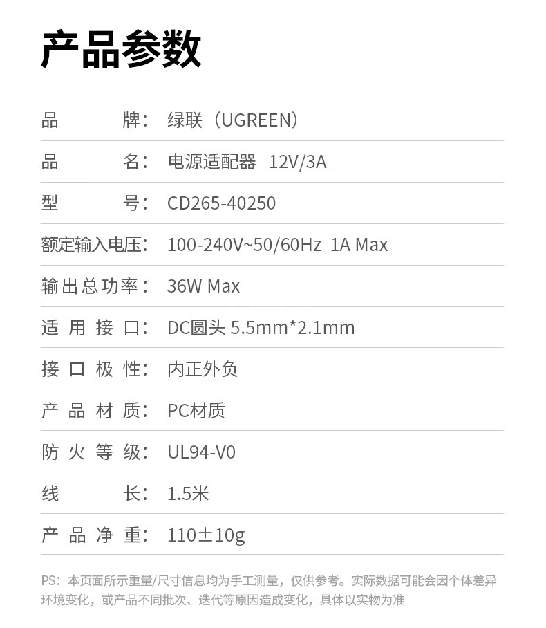 12V3A電源適配器*1