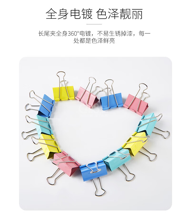 “BAOKE/寶克”BC1385 彩色長尾票夾 1盒裝(19mm辦公用品文具鳳尾夾5#)