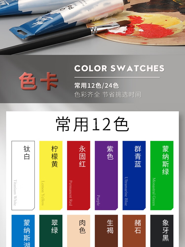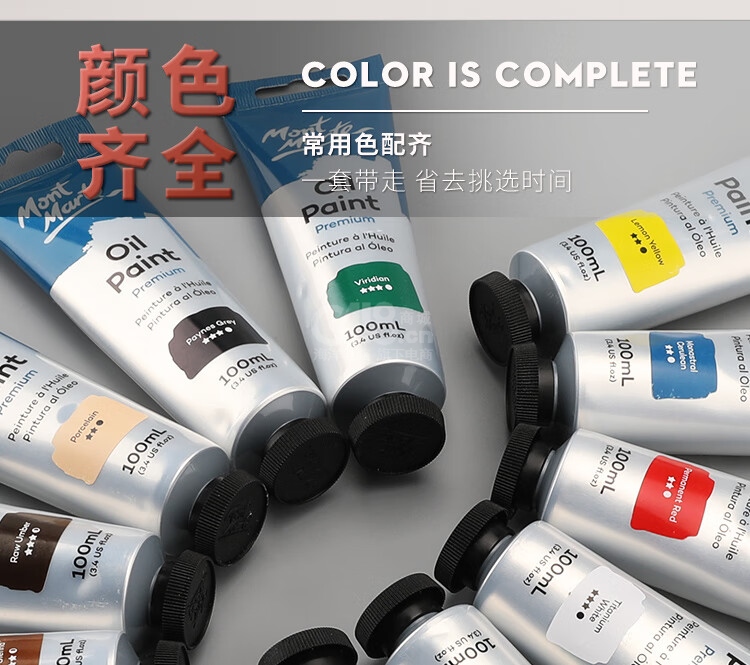“Mont Marte/蒙瑪特(蒙瑪特)”MPO100-24 油畫顏料 1盒裝(24色100ml美術(shù)繪畫油彩顏料油畫顏料套裝油畫筆油畫框用套裝顏料)