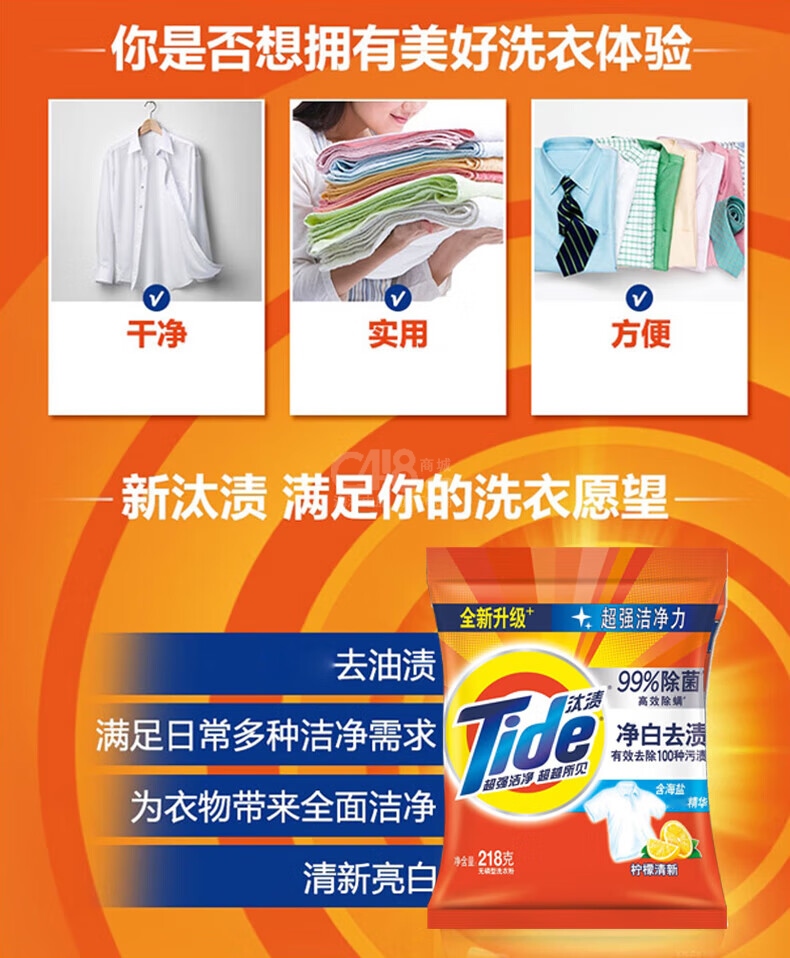 品牌:Tide/汰漬型號(hào):凈白去漬 檸檬清新 218克產(chǎn)地:廣東省廣州市